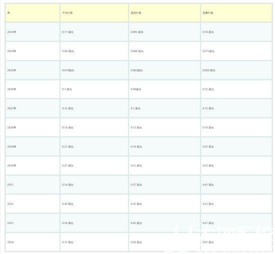 下表是2023 -2030 年,Hedera 的长期价格预测: