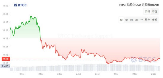 截止4 月24 日,HBAR 的交易价格为$0.1354,在过去24 小时上涨了53.61%,最高达到$0.1806。
