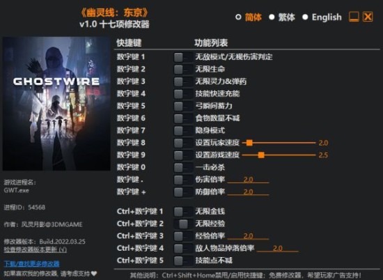 幽灵线东京修改器使用方法说明:
