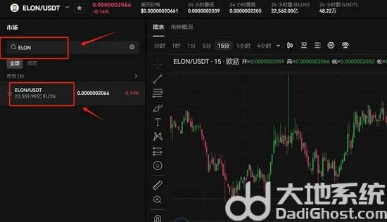 11、在搜索框输入ELON,选择ELON/USDT交易对,可以看到ELON实时行情