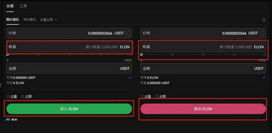 12、输入买入ELON数量,点击买入ELON就可以了;输入卖出ELON数量,点击卖出ELON就可以了