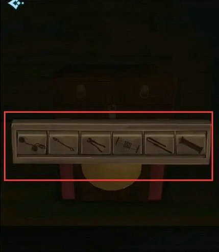 在柜子上将图案对应的刑法摆放好获得【刑具】,放到墙上挂起得到【滑块】,装到柜子的机关上,根据刑具对应调整密码为图2,得到【铁牌】,盆里拿到【铁片】,用铁片撬起松动的地砖有【磁石】,将磁石绑到上方的绳子上,在牢门桌子处使用绑好磁石的绳子获得【钥匙】,开锁
