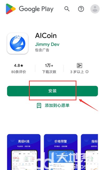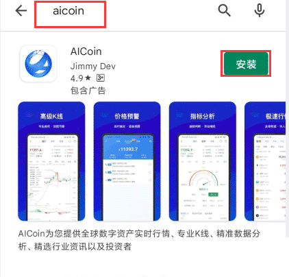 方法三:开启外网软件,在Google play搜索AICoin→点击安装。此方法同样需要使用Google 邮箱在Google play登录。