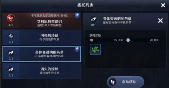 黑色沙漠手游里面不同的任务完成之后获得的奖励也是非常新颖的,在黑色沙漠手游里面,有一个任务需要玩家去寻找并收集能够让身体变透明的药草,但是很多玩家不知道黑色沙漠手游身体变透明的药草在哪,药草在布雷树森林地图拐弯角的位置,旁边有一块石头,玩家需要仔细寻找,因为杂草很多,所以可能会错过。