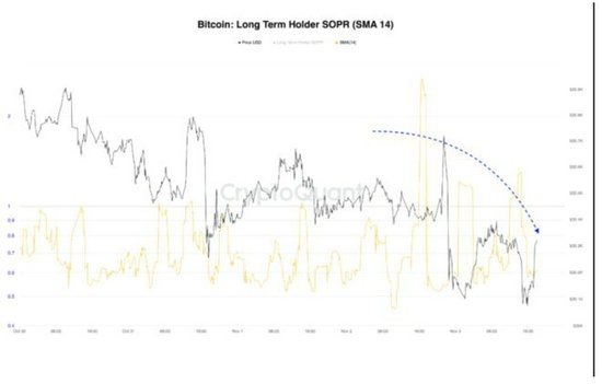 随着长期 SOPR 再次回到低位,比特币正从弱手转向强手。