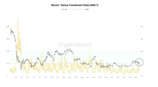 根据CryptoQuant 的数据,比特币代币交易计数或代币转移表明 BTC 正在易手。