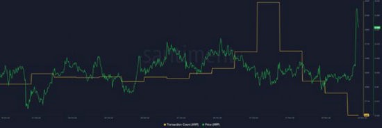 XRP 网络的一个令人担忧的趋势是,交易数量已降至极低的水平,这可能意味着尽管价格上涨,但需求仍在下降。