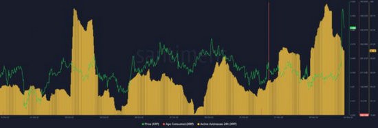 除此之外,衍生品 CDD 流入也注意到多头头寸的飙升,这支持了价格的短期上涨。