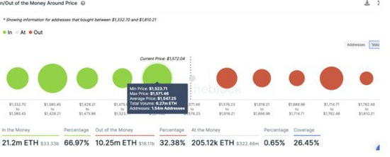 如果出现回调,1,547 美元大关将成为强有力的支撑,其中 154 万个地址持有 627 万个 ETH。