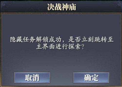1、决战神庙玩法将在完成第二天的主线任务,望京华·决战神庙后开启,这是一个通过完成事件、获得线索,推进故事的玩法