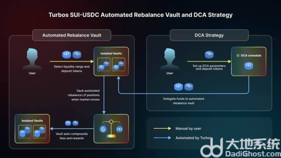 Turbos 正在引领 Sui 生态系统的流动性创新,在Sui 生态中各类 DeFi 的快速发展中,Turbos 近期重点推出在 Sui DEX 中的两个创新流动性策略,希望可以为市场参与者提供了新的机遇。分别是基于 CLMM DEX 创新的 SUI-USDC 自动重平衡金库和 SUI-USDC DCA 策略。