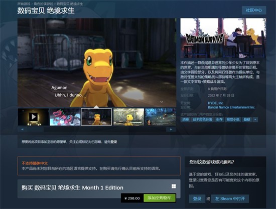 数码宝贝绝境求生steam价格是多少 数码宝贝绝境求生steam价格介绍