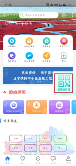 3.认证之后,在屏幕的右侧点击【健康通行码】进入使用健康通行码页面;