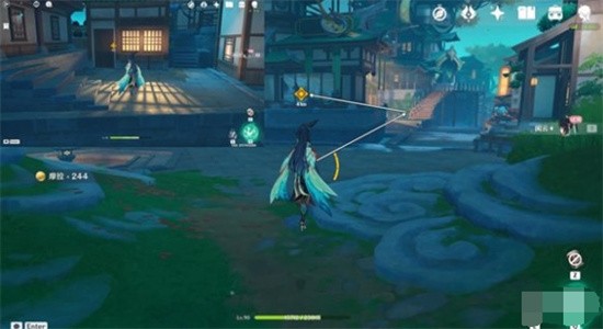 6、往北面走在水池位置获得宝箱,在回忆中的璃月港按照图中路线走。