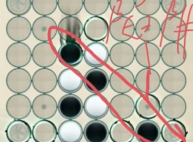 2、第一颗棋子必须下在最中央,然后机器人下一个我们就往上接一个,还要确保机器人只下在正中央和旁边的一列,一旦下在别的位置就直接重开。