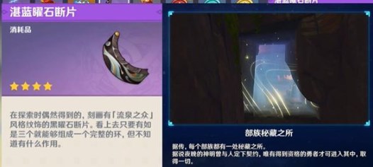 2、玩家在收集到足够的湛蓝曜石断片后,可以在流泉之众部族秘藏处提交来进入秘藏,获取其中的宝物。