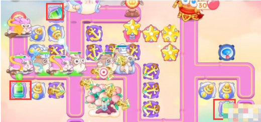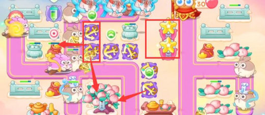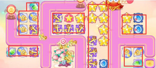 3、第一轮结束至少要把附近的道具打完,然后放置一到两个星星。