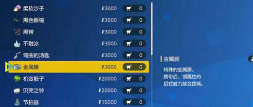 4、进化道具可以在酿光市信使鸟商店中购买获得,携带这个道具后宝可梦的钢属性招式威力也会提升,进一步强化宝可梦的战斗能力。