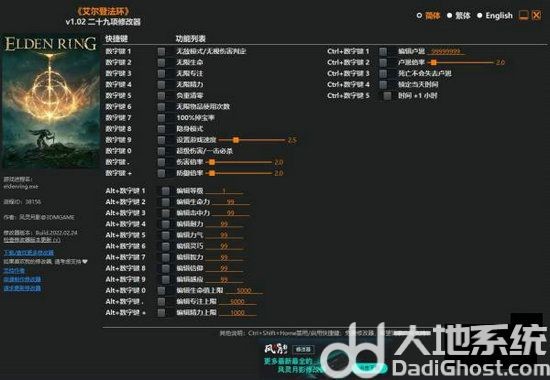 点击简体、繁体、English,可以切换语言 (切换语言后修改器将把该语言设置为默认语言)。