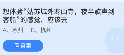 庄园小课堂每天会更新题目,在2022年8月5日更新的题目是“体验姑苏城外寒山寺,夜半歌声到客船的感觉应该去”、“吸烟有害健康,那吸烟会影响颜值吗”,庄园小课堂今日答案是什么呢,就是“苏州”、“会”,一起打开支付宝参与庄园小课堂的答题吧,就有机会领取饲料奖励哦。