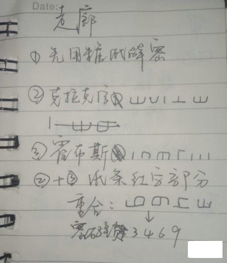 镜子中的数字是:18205. 那么在另一面的现实中的数字就应该是:20581,所以这个密码可以解开洛奇的铁盒子,铁盒子开了出现一张小纸条,纸条上面三个单词对应不同的数字,仔细观察这些单词,每个单词里面暗含了一个罗马数字,根据这个纸条线索可以推断出铁门上的单词暗含的罗马数字,抠出这些罗马数字与起对应的数字结合分析,可知大门的密码是247(这里忘了截图了所以只能说大概思路,不太明白的可以带图私信问我,或者在评论区提问),洛奇门开了,三人逃出密室。
