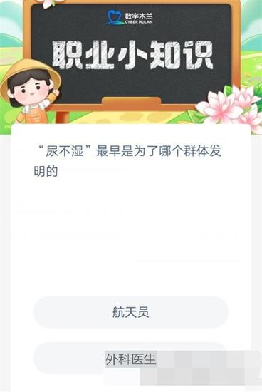 蚂蚁新村2月8日今日问题尿不湿最早是为了哪个群体发明的?通过支付宝就可以体验蚂蚁新村的全新玩法,每天签到登录回答问题,就可以获得免费的村民去建造自己的村庄,并且还可以让木兰币加速产出捐赠用于公益事业,小编为小伙伴带来了蚂蚁新村小课堂今日答案最新2月8日,正确答案选择航天员。