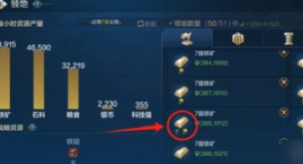 4、找到带有铁锭标准的铁矿资源后,只需通过【军垦】并确认就能获得对应的铁锭。