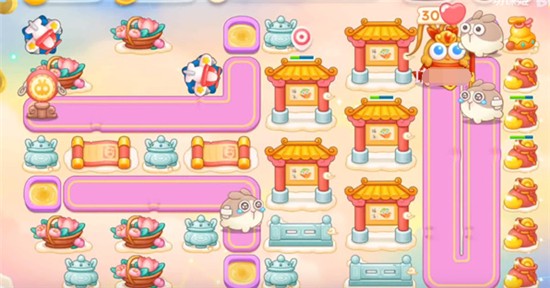 5、开出一空位之后,在右边再建一个三级的手电筒,去把右边的钱袋都给清掉,后面的话听起来就比较简单了,大家记得在左边再多补一些玩具飞机;