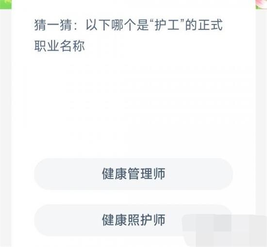 蚂蚁新村11月24日今日问题猜一猜以下哪个是护工的正式职业名称?蚂蚁新村是支付宝推出的答题玩法,通过每天一道问题,不仅可以丰富自己的知识层面,回答正确还可以获得免费的村民和加速产出的木兰币,回答错误也没有关系,详细的解析会为你呈现,小编为小伙伴带来了蚂蚁新村今日答案最新11.24,正确答案选择健康照护师。