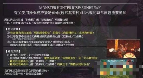 有关使用操虫棍狩猎妃蜘蛛(包括其亚种)时出现的异常问题重要通知