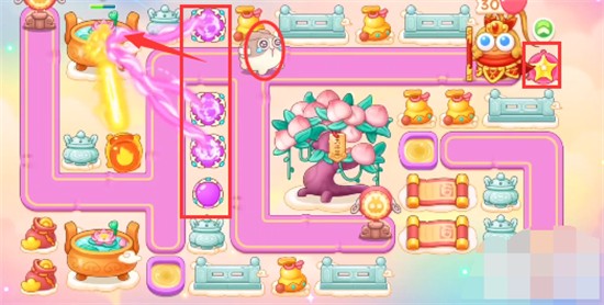 1、本关能够使用的炮塔是:魔法球、火瓶、回旋镖、导弹、星星、月亮,这一关我们需要多使用防空炮塔。