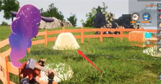 抓取一只小鸡类的帕鲁放在养殖场里,到时间会自动产生鸡蛋等食物。