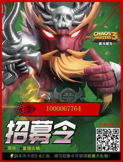 提示1:小伙伴在副本关卡2-8之前填写招募令才有效,超过这个关卡就不能填写了。