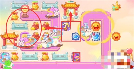 1、这一关我们可以选择的炮塔为毒针、太阳、雷达、船锚、烟花,这一关我们使用太阳和烟花玩。