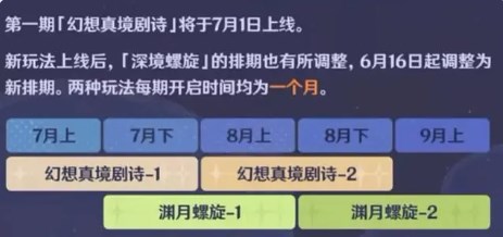 新深渊是7月1号上线之后,每个月的一号刷新,每期持续一个月。老深渊每个月的16号刷新,持续一个月,和之前一样。奖励方面,老深渊的原石从600提升到了800,新之渊首通有1100的原石,之后每期拿满有620原石,也就是从每个月的最高1200原石提升到了1420原石。