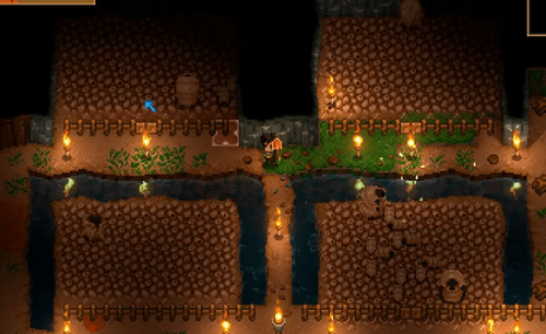游戏中,我们可以在家附近找一块空地放置探险时挖来的地面,并用墙壁围起来,配合尖刺陷阱就能制作一个刷怪的农场。