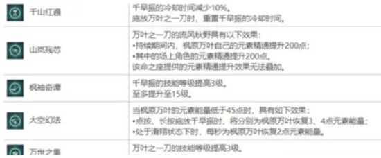 2.二命能给全队加200点精通,打元素反应的话增伤显著,并且200点精通算进万叶的固有天赋里,就是全队8%的元素伤害加成,200精通+8%元素加成,且算上精通提高的扩散伤害,可以说是提升巨大。