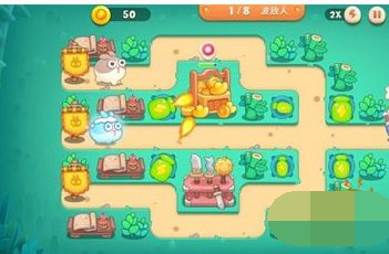 1.开局六个瓶子炮,最左边一列的两个瓶子炮满级,用来清障碍,离萝卜最近的瓶子炮也满级,用来清怪物,冰冻怪会在中间一列炸开冻住,所以中间一列瓶子炮不用管。
