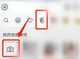 2、点击【笑脸图标】,轻击【剪刀手图标】