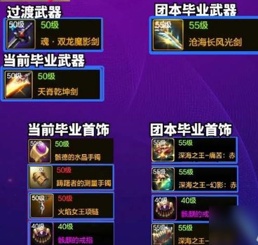 前期可以选择双龙魔影剑过渡,当前的毕业武器是天脊乾坤剑。团本毕业武器是沧海长风光剑。