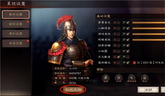 进入系统设置后,点击底栏的礼包兑换按钮。