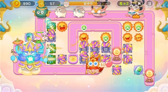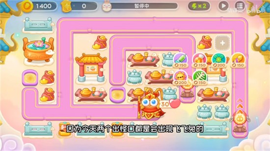 3、第二步开头右下角就会出现飞兔,时间点大概就是右上角的钱袋打掉的,那个时候大家要提前建上3级的烟花;