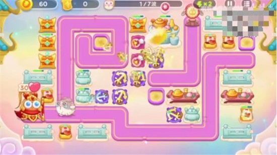 4、后期有钱的话,继续往中间放船锚炮,顺着仙女的行动轨迹放也行,要注意别漏掉兔子即可。