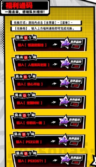 女神异闻录夜幕魅影公测口令码怎么兑换?女神异闻录夜幕魅影作为P5X系列游戏的最新手游,在本次公测开启中带来了超多的福利内容,其中的公测口令码【异界晶珀】为玩家们带来了非常丰富的福利奖励,有很多新手玩家还不太清楚游戏中兑换口令码的入口在哪里,本次就让小编带来本次公测的全部口令码和它们的兑换方法介绍。