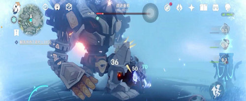 3、走到雪葬之树的近郊,开启挑战点亮冰柱,点亮冰柱后,去击败三个遗迹重基,开启圆盘