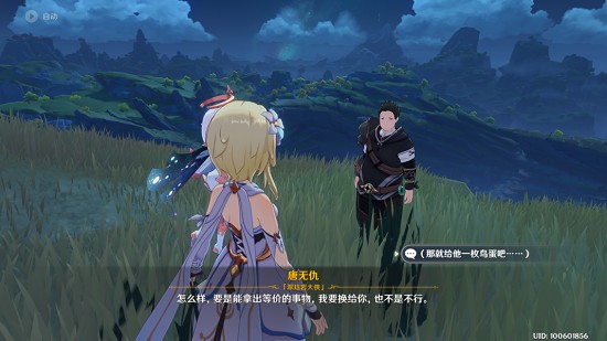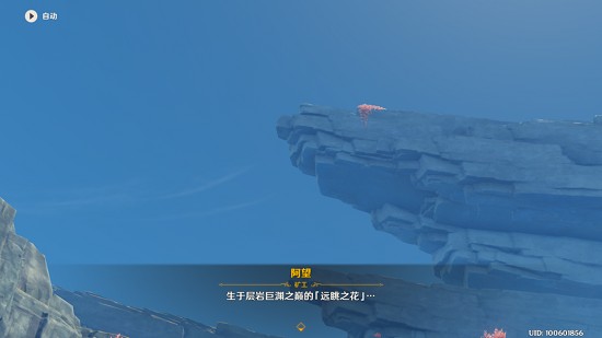 在前往获取千年千岩任务道具-「远眺之花」的山崖处会碰到一个奇怪的人-唐无仇,将他身边的清心采光后开启隐藏任务-岩巅大侠往事
