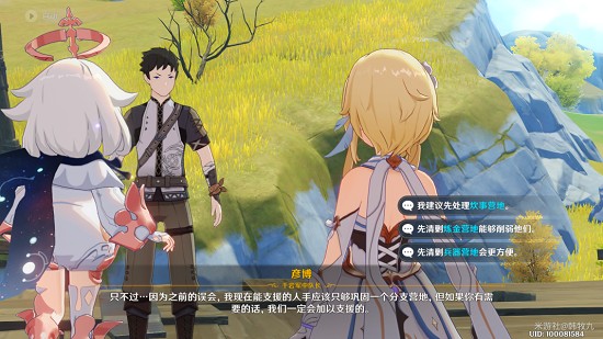 千岩军会帮助旅行者先清理掉一个营地(就是对话中选择的那个)。