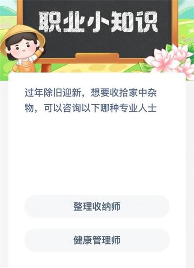今日问题:过年除旧迎新想要收拾家中杂物可以咨询以下哪种专业人士?