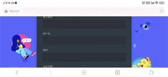 如果出现点击Discord,界面直接转到谷歌商店网页需要下载软件的情况。可通过浏览器设置→浏览器标识(UA)→切换为电脑(PC)解决。