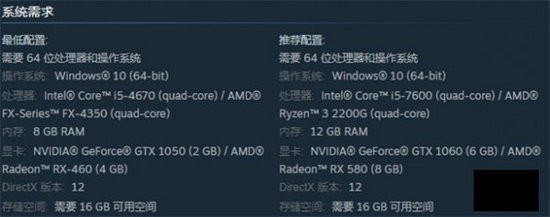 游戏的配置要求并不高,无论是英特尔i5还是英伟达1060,都是比较低的配置,对现在的玩家来说都是差一些的。